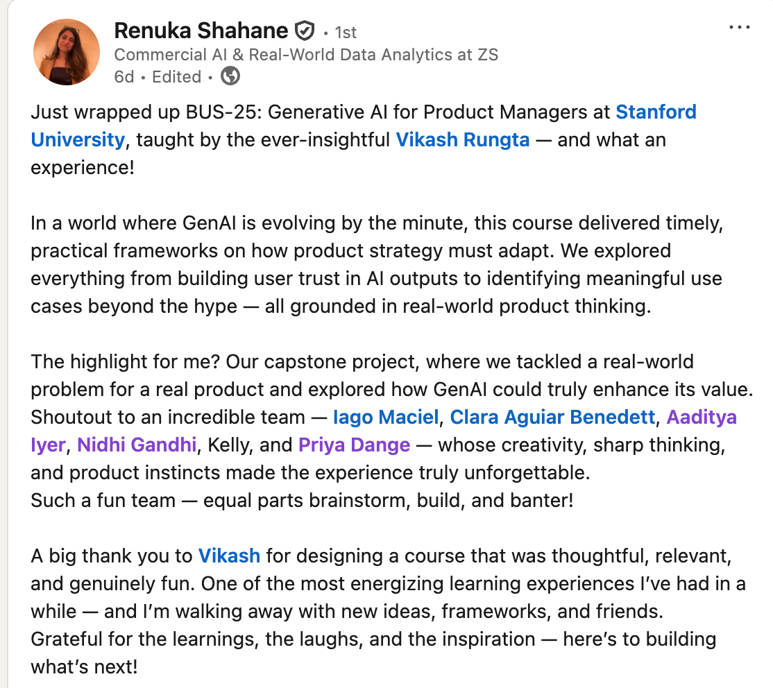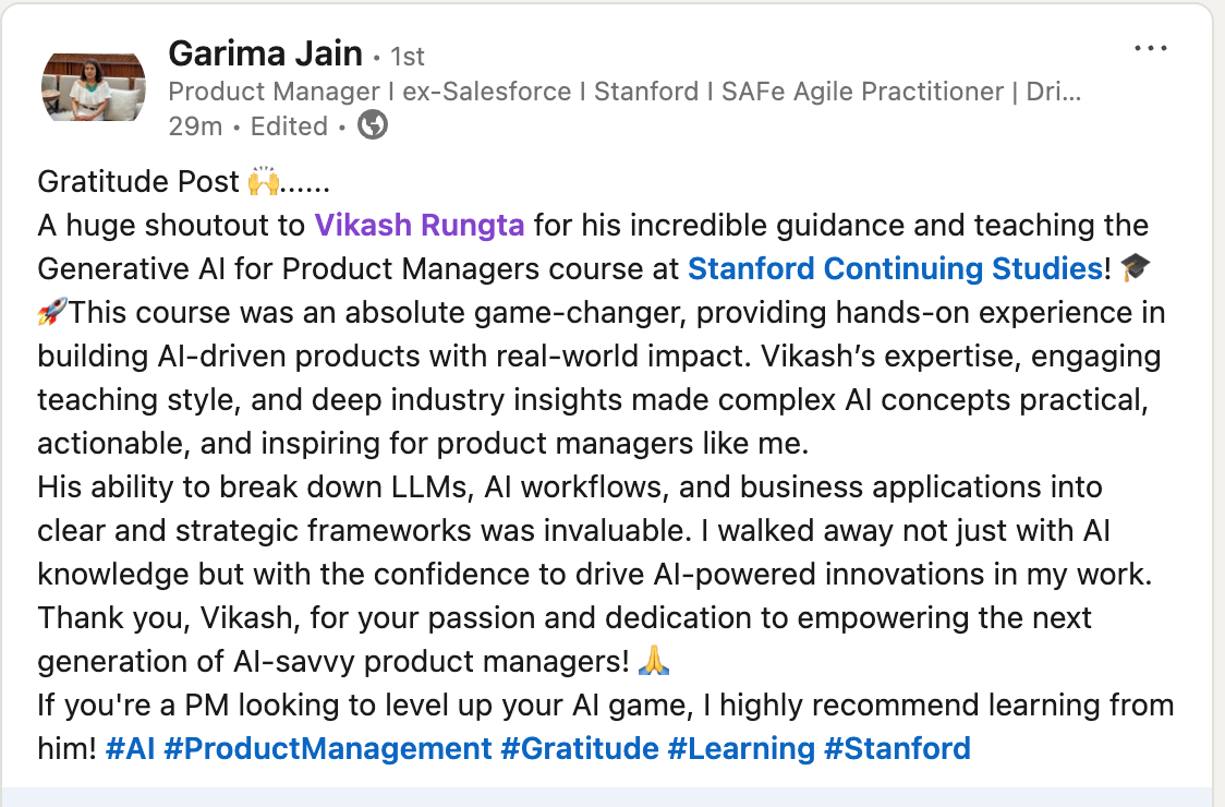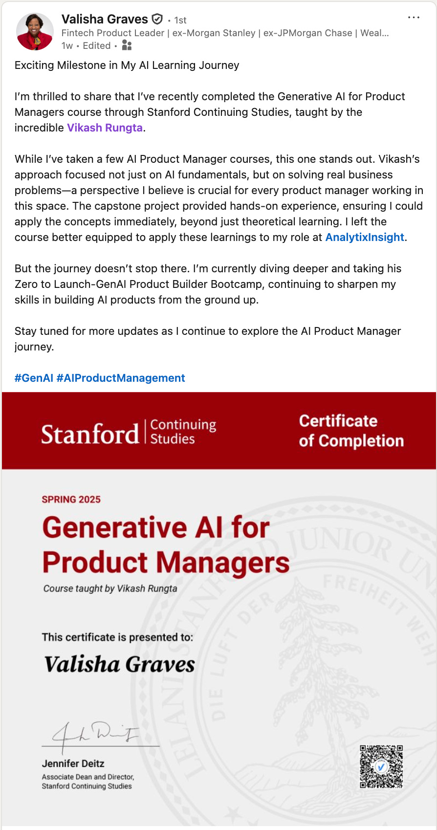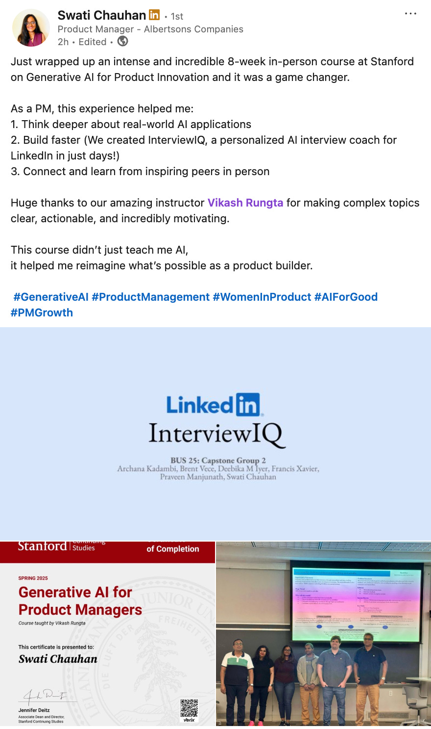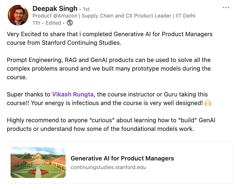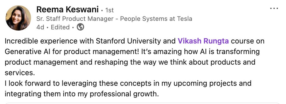 Stanford Continuing Education - BUS-25: Generative AI for Product managers (if waitlisted or interested in future cohorts Waitlist signup)