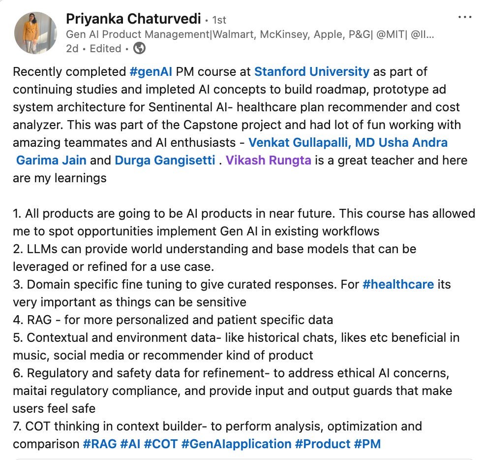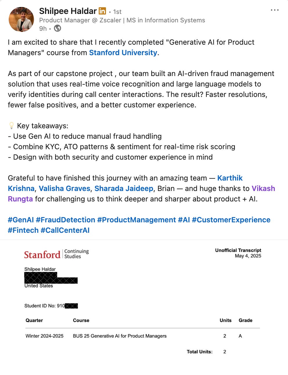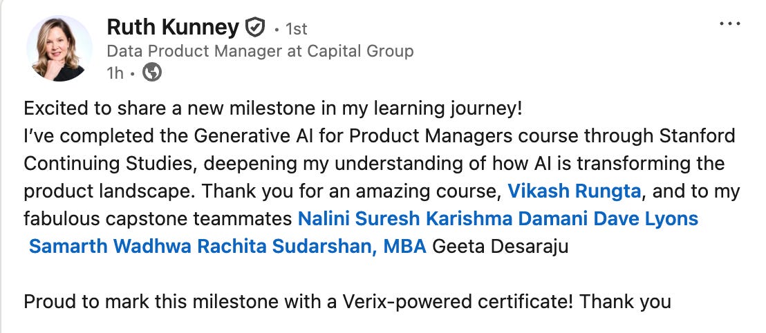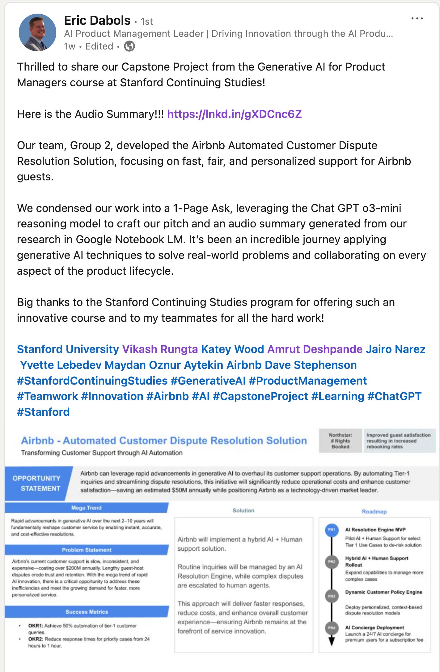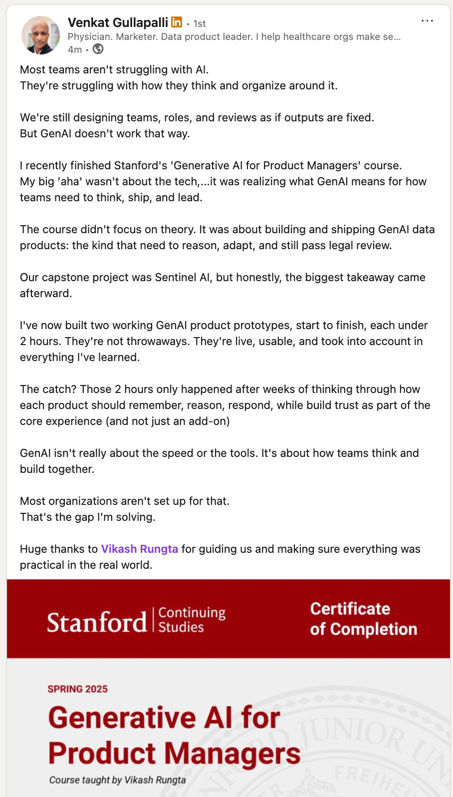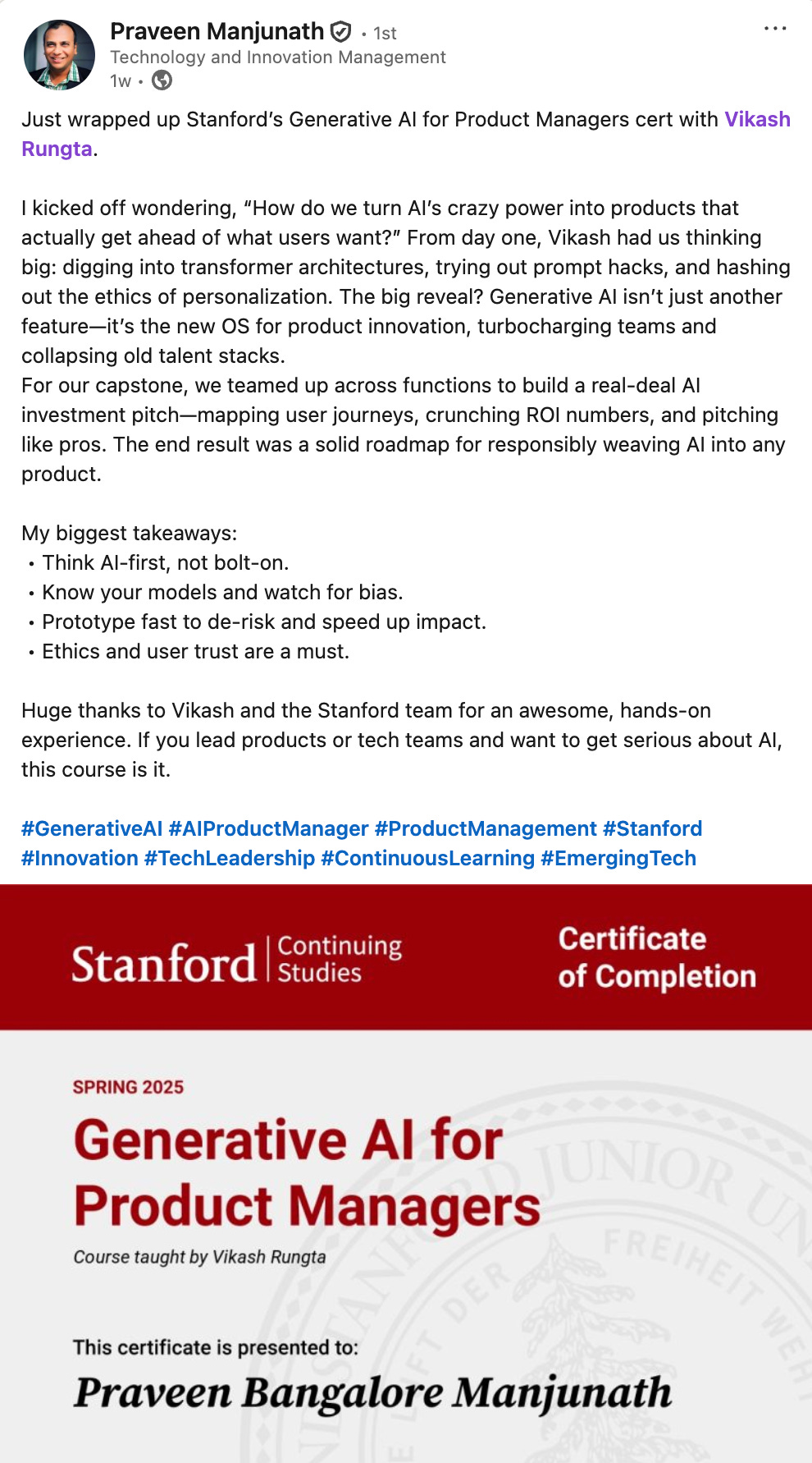 Stanford Continuing Education - BUS-25: Generative AI for Product managers (if waitlisted or interested in future cohorts Waitlist signup)