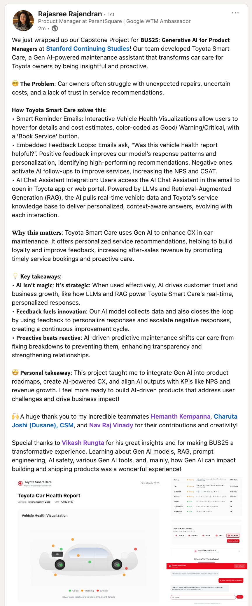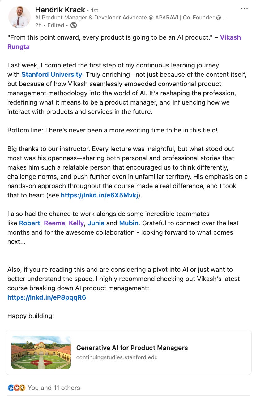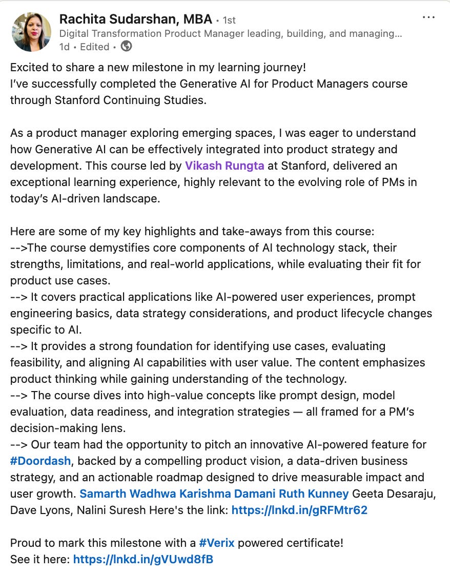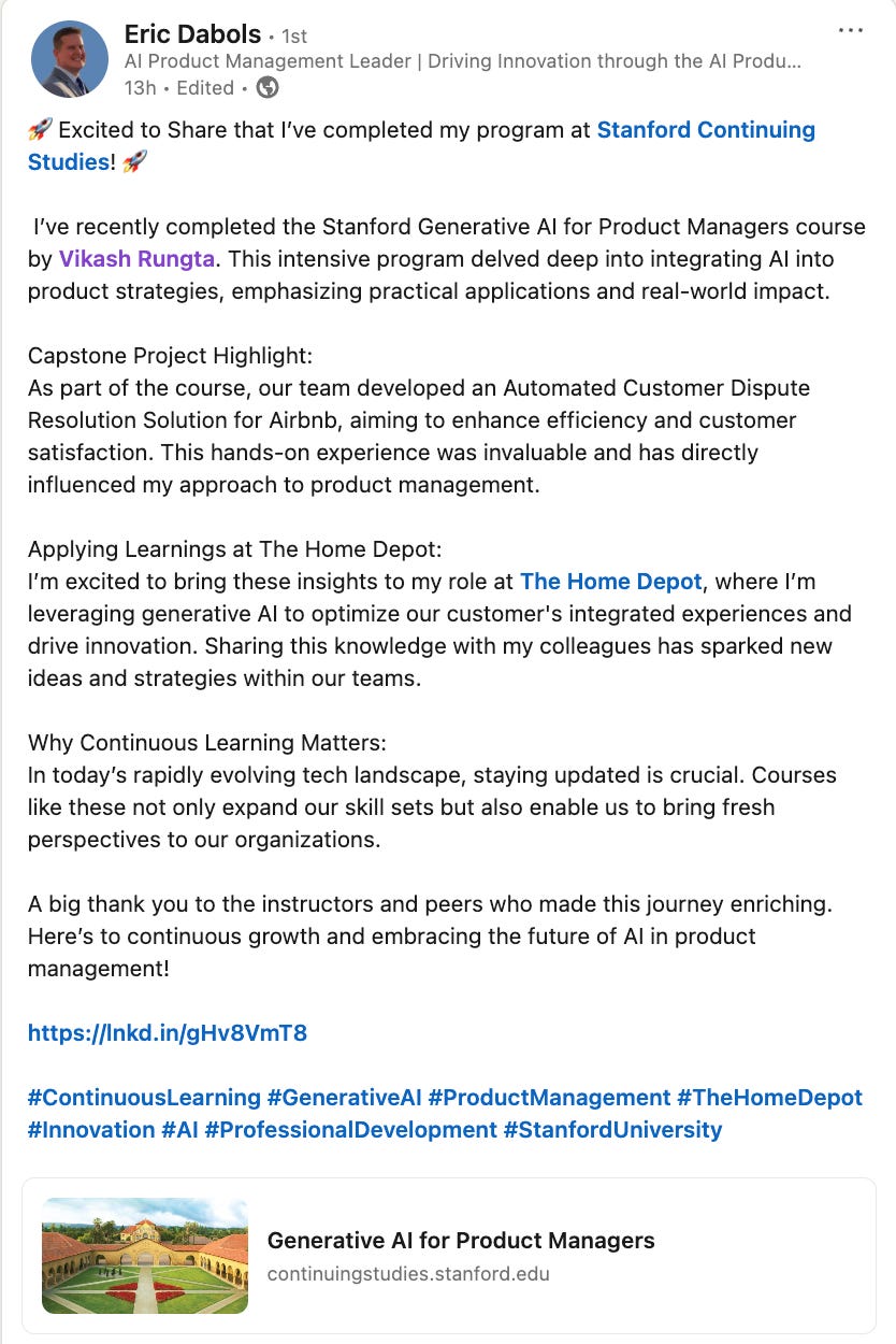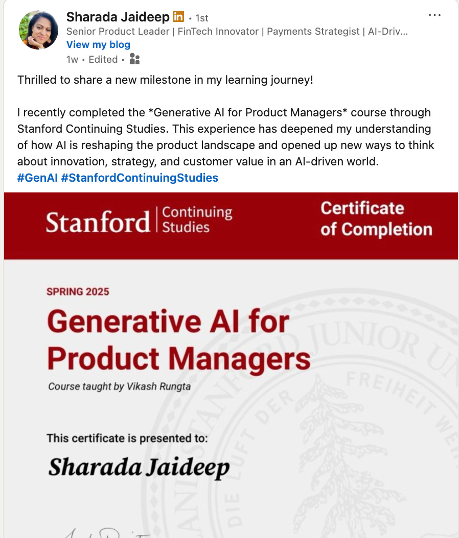 Stanford Continuing Education - BUS-25: Generative AI for Product managers (if waitlisted or interested in future cohorts Waitlist signup)