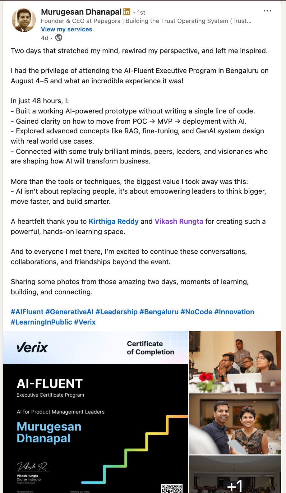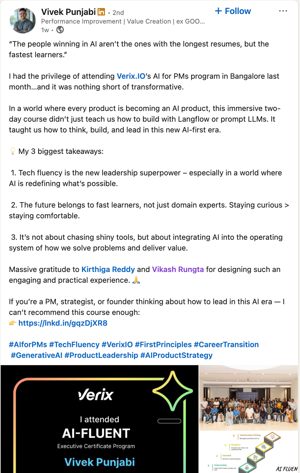 AI for Product Management Leaders - "First Principles" Framework for Mastering AI (in collaboration with Verix) - Link (if waitlisted or interested in future cohorts Waitlist signup)