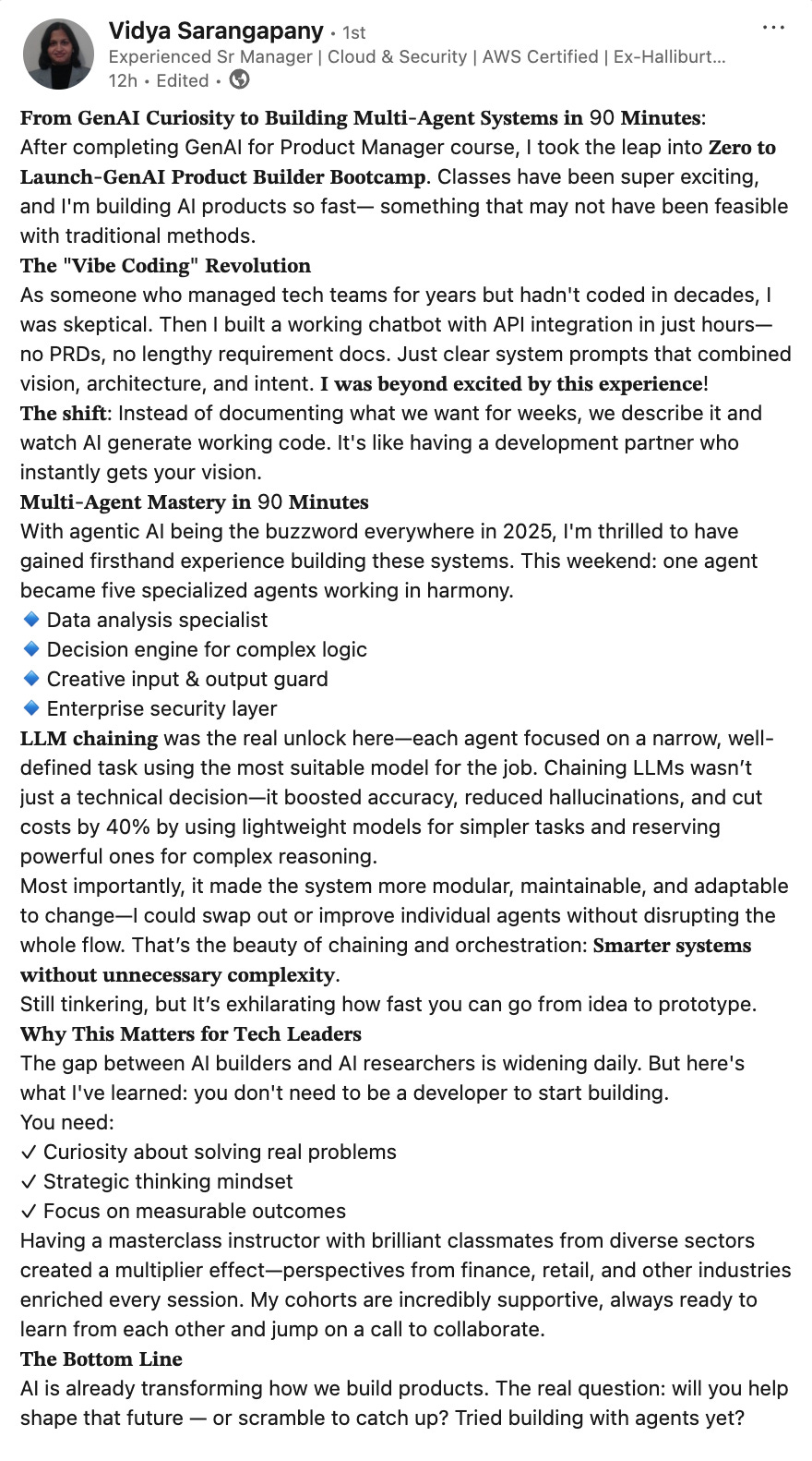 🚀 Zero to Launch (with enhanced vibe coding) – GenAI Product Builder Bootcamp (details) - Launching Dec-2025 (if waitlisted or interested in future cohorts Waitlist signup)